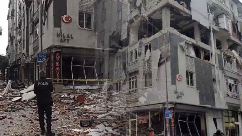 Patlama nedeniyle çok sayıda ev, iş yeri ve araç zarar gördü, olay yeri trafiğe kapatıldı, bölgeye güvenlik şeridi çekildi.