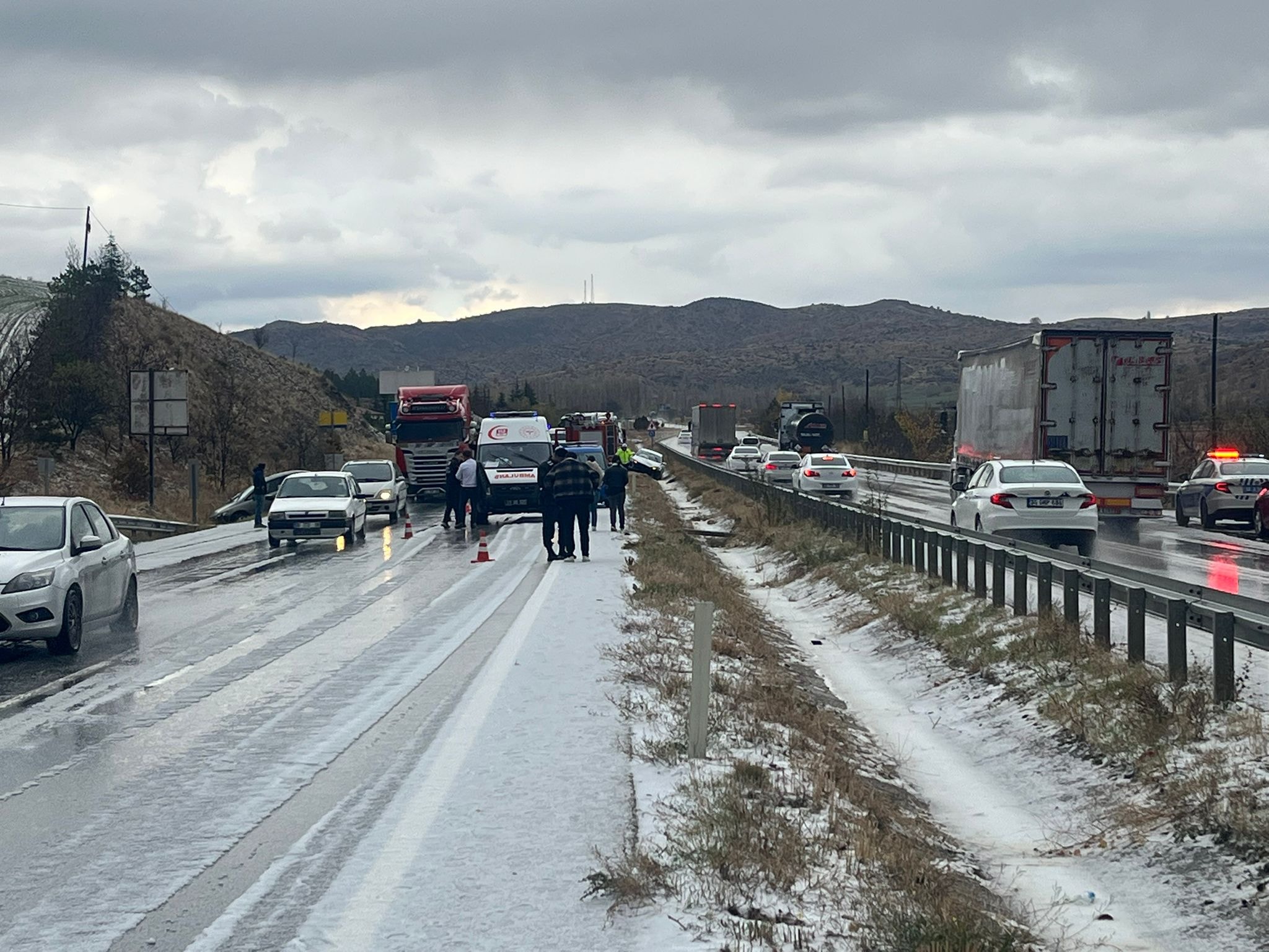 Çorum-Sungurlu kara yolu Kırankışla köyü yakınlarında etkili olan dolu yağışı sırasında 3 otomobil ile bir cip çarpıştı.