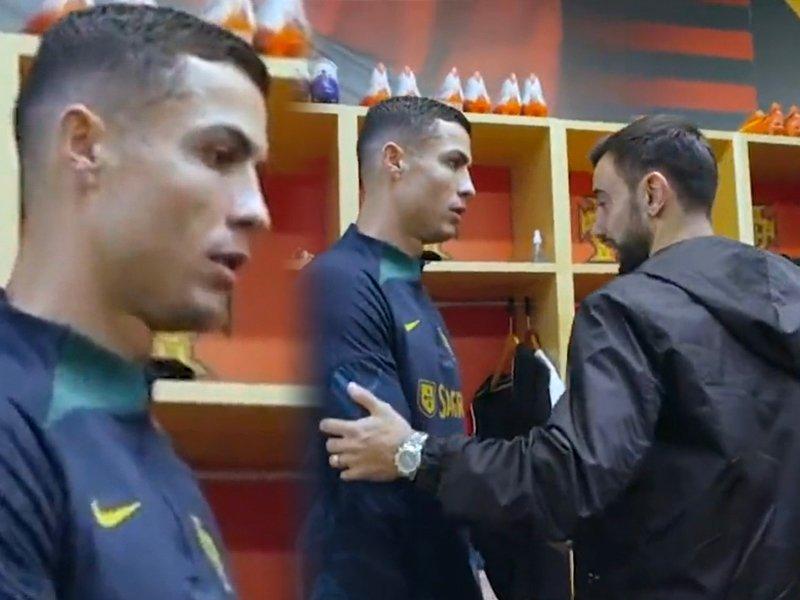 Manchester United forması giyen Cristiano Ronaldo ve Bruno Fernandes, Portekiz Milli Takımı için toplandıkları kampta soyunma odasında karşılaştı.