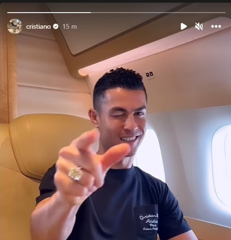 Suudi Arabistan ailesi ile birlikte özel jetiyle hareket eden Cristiano Ronaldo, Instagram hesabından havadayken çekilmiş videosunu paylaştı. Yıldız futbolcu paylaşımında "Selam arkadaşlar... Yakında görüşürüz!" dedi.