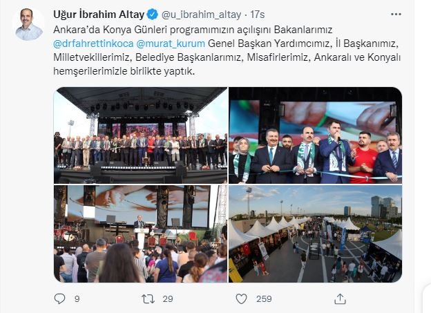 * Konya Büyükşehir Belediye Başkanı Uğur İbrahim Altay ise yaptığı açıklamalarda Genel Başkanımızın katılımından onur duyması gerekirken şark kurnazlığı yaparak kendince görmezden geldi.