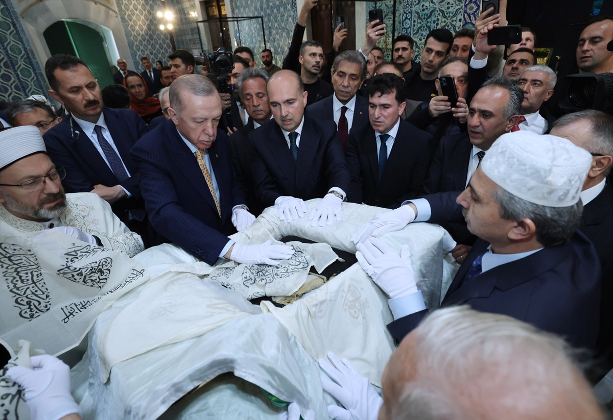 Daha sonra, "İstanbul Mushafı" Hediye Merasimi'ne katılmak üzere Topkapı Sarayı'na geçen Erdoğan, hattat Hüseyin Kutlu ve 66 kişilik ekibi tarafından 8 yılda hazırlanan 10 ciltlik "İstanbul Mushafı"nı, Mukaddes Emanetler Dairesine hediye etti.