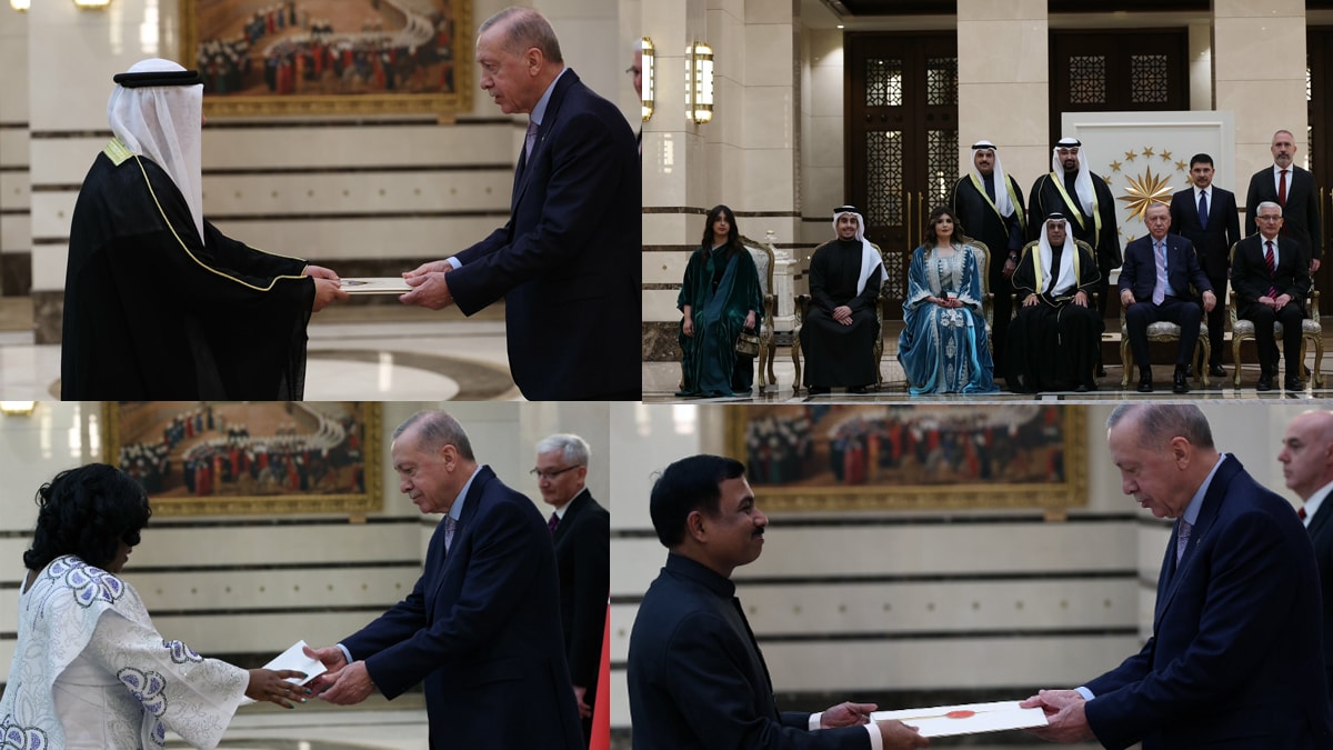 Beştepe'deki kabulde büyükelçiler, Erdoğan'a güven mektuplarını sundu.