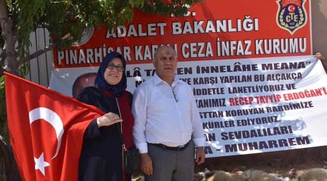 Kırklareli’nde oturan iş adam Muharrem Erkut, 15 Temmuz gecesi yaşanan askeri darbe girişiminden Cumhurbaşkanı Recep Tayyip Erdoğan’ın sağ salim kurtulması nedeniyle cezaevi önünde kurban kesti. Erdoğan’ın tutuklu olduğu dönemde eşi Papatya Erkut’un yaptığı yemekleri cezaevine götürdüğünü anlatan iş adam Muharrem hazırlattığı pankart ve kurbanlık koyunlarla cezaevi önüne geldi. 1999 yılında Cumhurbaşkanı Erdoğan’ın Pınarhisar Cezaevi’nde 4 ay 10 gün kaldığını ifade eden işadamı Erkut, "Cumhurbaşkanımızı Pınarhisar Cezaevinden tekbirlerle kurbanlarla uğurlamıştık. Aradan tam 17 yıl geçti. Bugün ki tekbir ve kurbanlar ise sayın Cumhurbaşkanımızın 15 Temmuz suikastından kurtulduğu içindir. Ben ömrümün geride kalan 60 yılını 60-71-80 darbeleri ile geçirmiş biri olarak yaşadım. Daha sonra postal sesleri ve tank gezmeleri ama o dönemler artık bitti. Şimdi şuna şahit oldum ve inanıyorum ki ömrümün kalan günlerini Başkomutanımız Recep Tayyip Erdoğan’ın dirayetli duruşu sayesinde bir daha darbe riski olmadan yaşayabileceğim. Allah devletimize, ülkemize, milletimize bir daha 15 Temmuz yaşatmasın inşallah" dedi.
