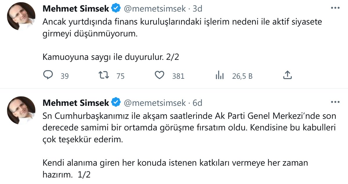 AKP Genel Merkezi'ndeki görüşmeyle ilgili sosyal medya hesabından paylaşımlar yapan Mehmet Şimşek, şunları belirtti: