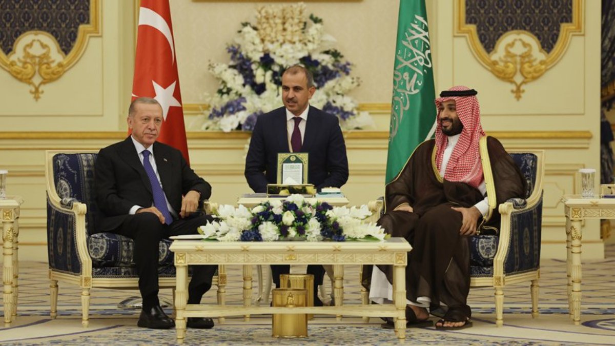 Erdoğan ve Selman'ın tören alanındaki yerlerini almasının ardından iki ülke milli marşları çalındı.