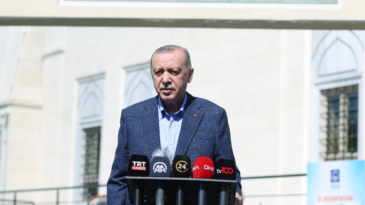 Burada Cuma namazını kılan Cumhurbaşkanı Erdoğan, cami çıkışı gazetecilerin sorularını yanıtladı.