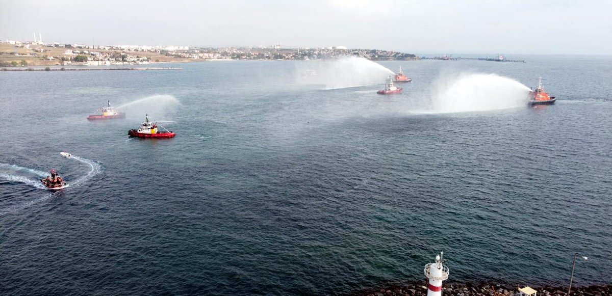 Marmara Ereğlisi'nde Cumhuriyet Bayramı kutlamaları denizde başladı. Türk bayraklarıyla donatılan balıkçı teknelerinin geçişi sırasında BOTAŞ'a ait römorkların su takı gösterisi, kıyıda ellerinde Türk bayrakları bulunan vatandaşlar tarafından ilgiyle izlendi.