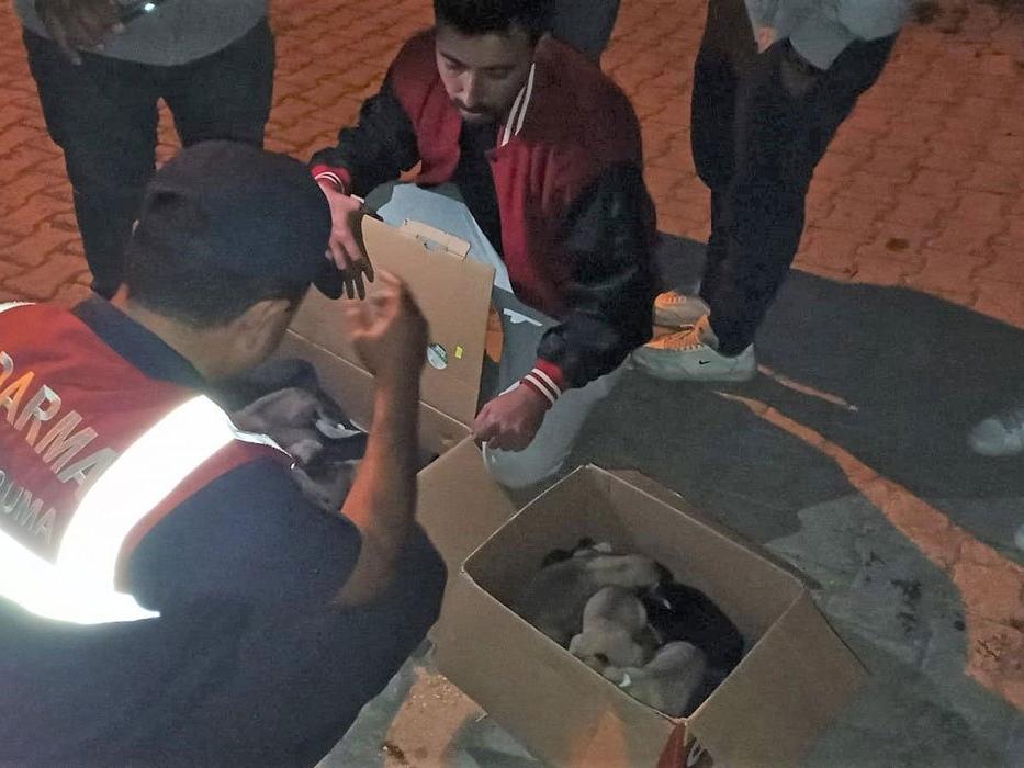 Kısa sürede köye ulaşan ekipler duyarlı bir vatandaş tarafından çuval içinde ölmek üzere iken bulunan köpeklere sahip çıktı. Karton kutulara konulan yavru köpeklere mama ve su verildi.