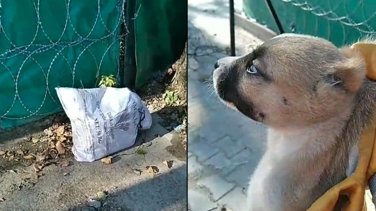 Keşan Sokak Hayvanlarını Koruma Derneği'nin (KE-HAYKO) İspat Cami Mahallesi Kurtuluş Caddesi'ndeki canevi barınağına gelen görevli, barınağın önüne bırakılmış ağzı bağlı çuvalı fark etti.