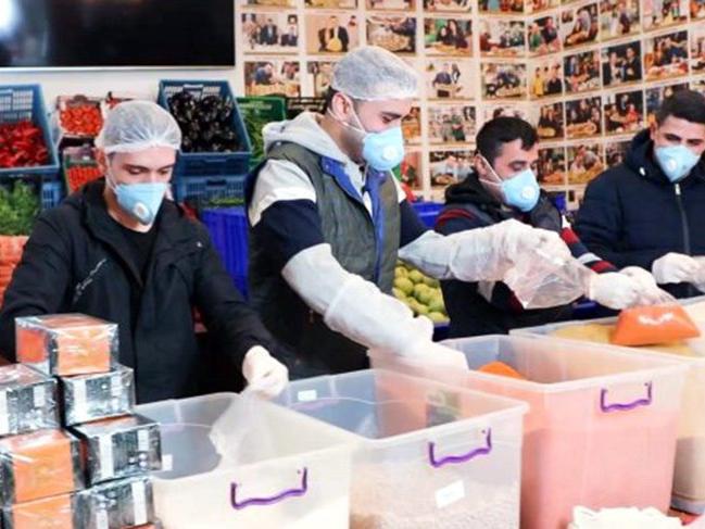 Restoranlarındaki 2,5 ton sebze ve 1 tona yakın bakliyatların vatandaşlara ulaştırılmasını isteyen CZN Burak ve ekibi, özenle gıda kolilerini hazırladı. Özdemir ve ekibi, ürünleri paketlere yerleştirirken virüse karşı dezenfekte etti.