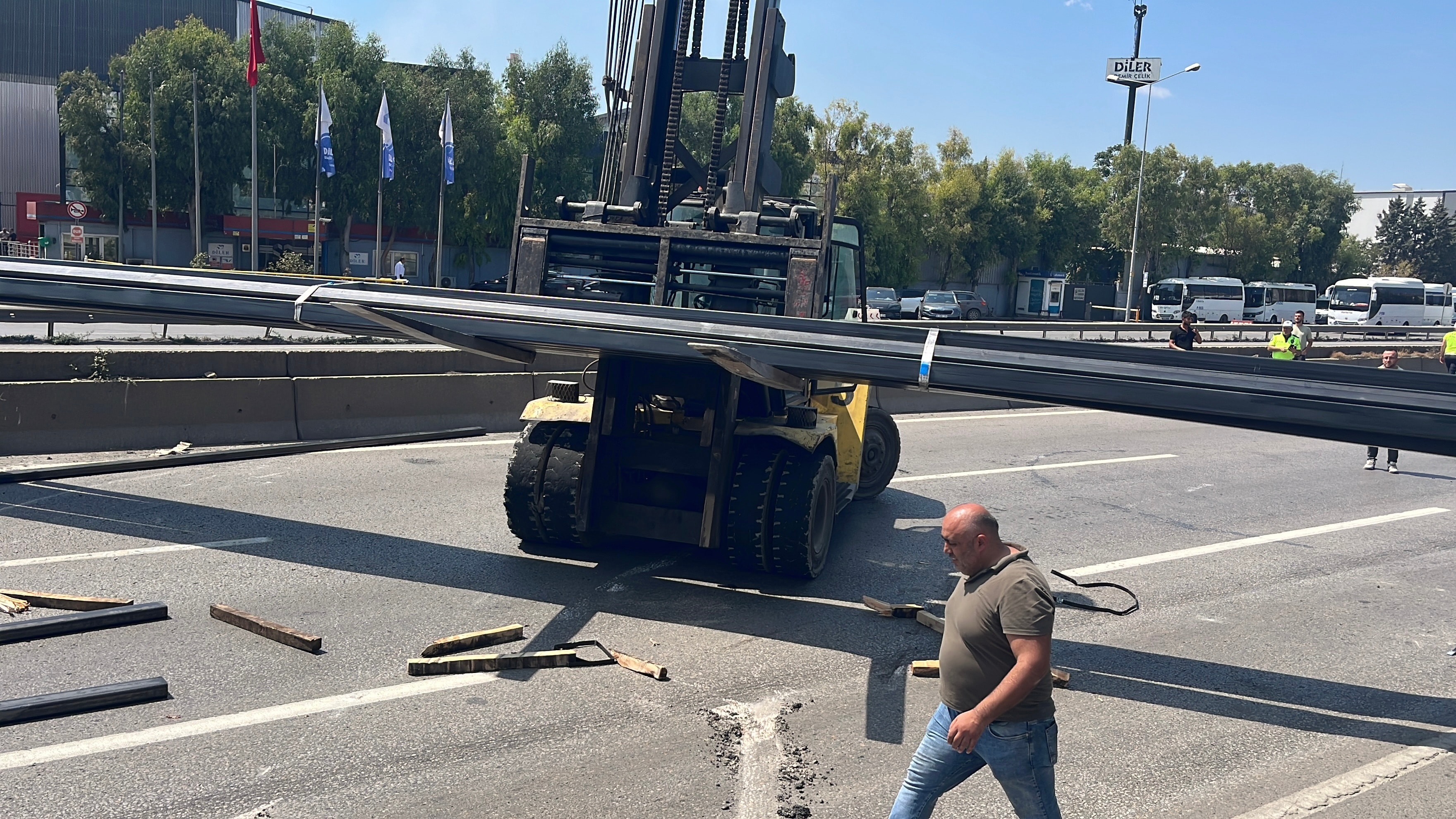Yola düşen profiller, yol kenarındaki ağaçlara ve korkuluklara çarparken, bir otomobilde de hasara neden oldu. Çevredekilerin ihbarı üzerine bölgeye itfaiye, polis ve sağlık ekipleri sevk edildi.
