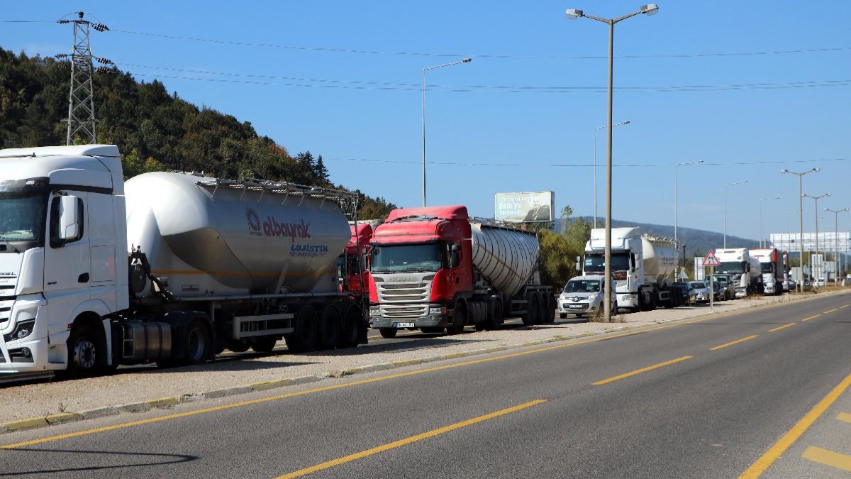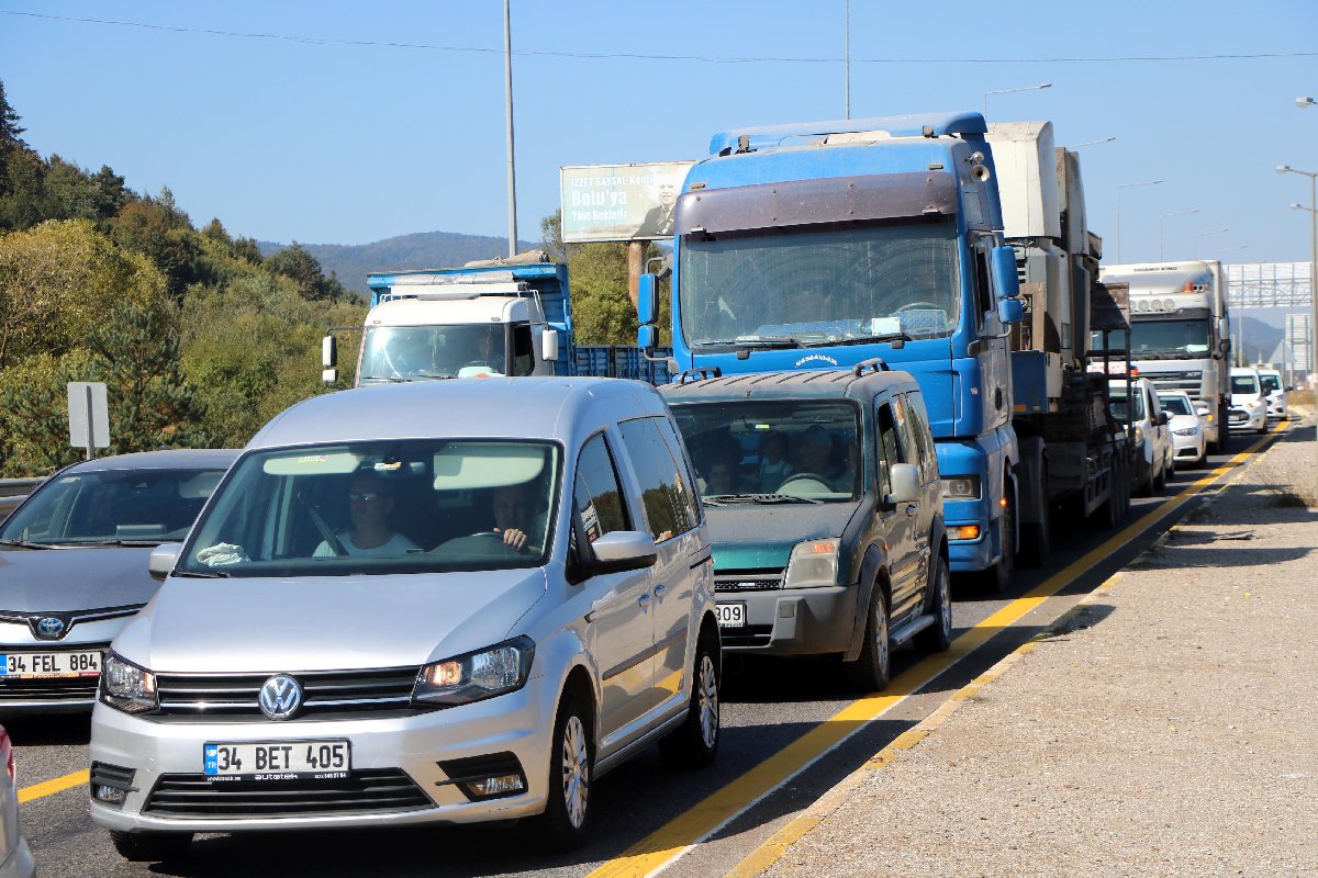 Yolun Abant gişelerine bağlantısını sağlayan kavşakta yer yer uzun araç kuyrukları oluştu. (DHA)