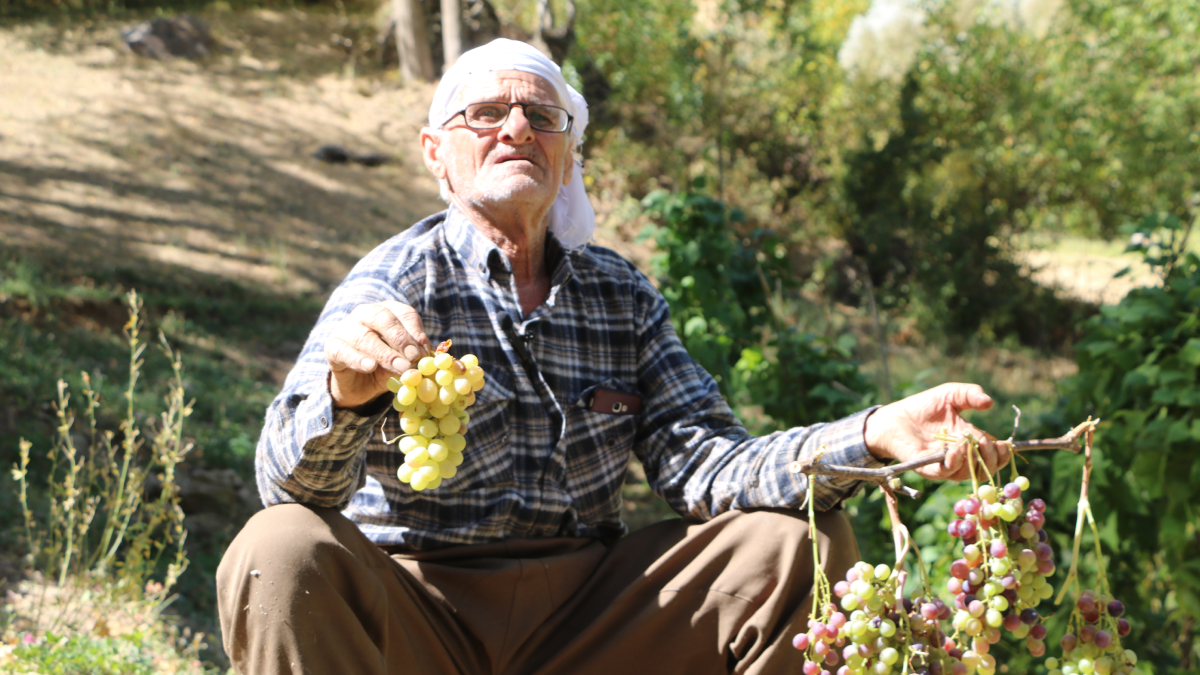 Şemdinli ilçesi Altınsu köyünde yaşayan 12 çocuk babası Süso Çakar, 65 yıldır geçimini üzüm üretimiyle sağlıyor. Kendisine ait dağlık arazilerde kurulu üzüm bağlarında tek başına çalışan Çakar, sabahın erken saatlerinde bahçesine gidip gün boyu üzüm topluyor. Hasat ettiği üzümleri ise kızakla taşıyarak yaklaşık 3 kilometrelik dik yamaçtan köyüne indiriyor. Çakar, bir ay boyunca hasat ettiği yaklaşık 8 ton üzümü satarak geçimini sağlıyor.
