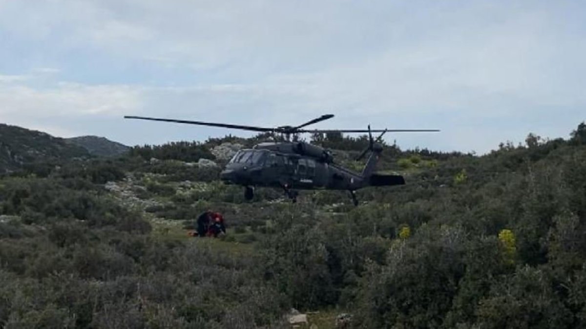 Vücudunun çeşitli yerlerinde kırıklar olduğu belirlenen A.R.H.'nin bulunduğu arazinin sarp ve engebeli olması nedeniyle helikopter talep edildi. Bölgeye yönlendirilen jandarma helikopterine alınan A.R.H., Akdeniz Üniversitesi Hastanesi'ne sevk edildi. (DHA)