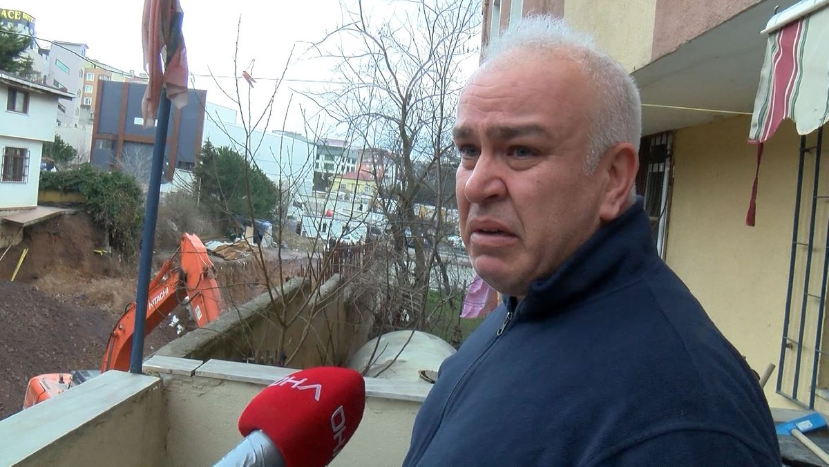 Binada sakinlerinden Ferit Yarız, "Sabah 05.00 gibiydi. Kalktığımızda saclardan hafif bir gürültü geldi. Ben dolu yağıyor zannettim. Camı araladığımda yan tarafımızdaki inşaatın istinat duvarının aniden çöktüğünü gördüm. Çok korkunç bir durumdu. Çocuklar ağlayarak yanıma koştu. Dışarı çıkarıp, karşı tarafa geçtik. Oradaki diğer çocukları da dışarı çıkardık. Binamızın içi hasar almış durumda. Anlatıyorum adamlar kabul etmiyor. Belediye geldi, hiçbir şey söylemeden gitti. Kızım ağlıyor, 'Baba içeri girmek istemiyorum' diyor. Berbat bir durumdayız. Binamız sallanıyor, yıkılacak gibi. Hala da çalışıyorlar, anlamıyorlar. Boydan boya 100-200 metre yarık var. Bize inanmıyorlar. Hiç kimse de dur demiyor" dedi.