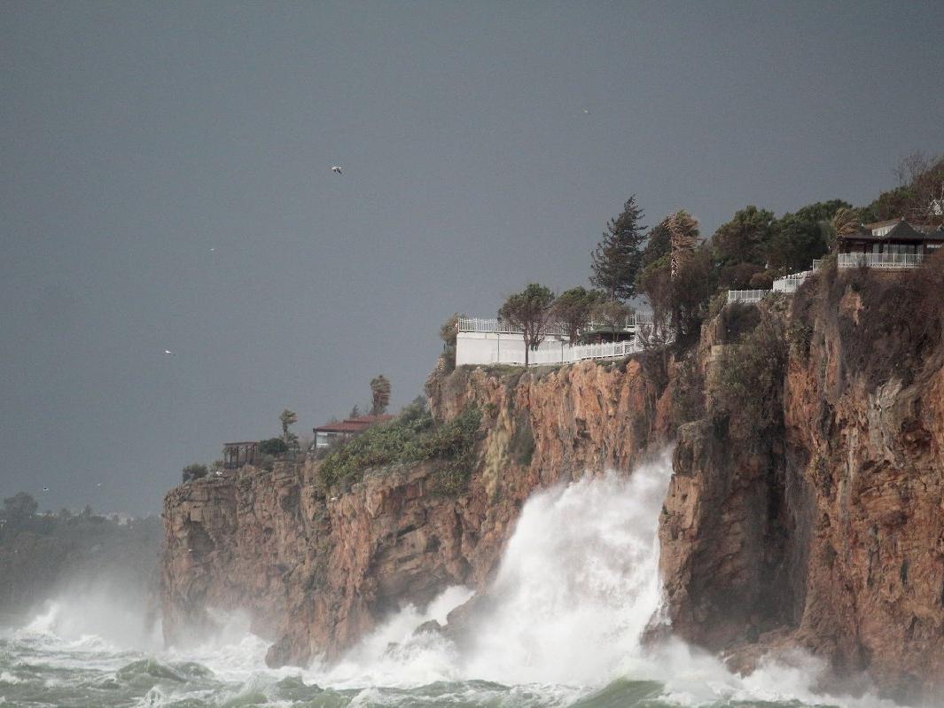 Kaleiçi Yat Limanı’ndaki tekneler beşik gibi sallandı, bir tekne ise battı. Dalgakıran üzerinden aşan dalgaları turistler ve vatandaşlar hem izledi hem cep telefonları ile görüntüledi.