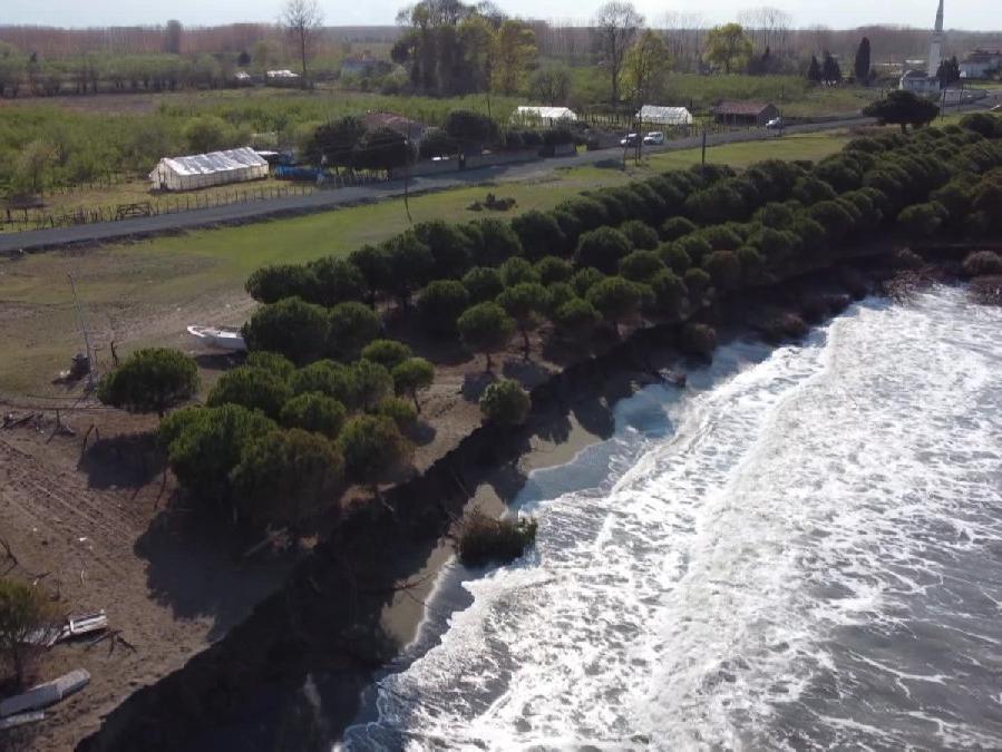 İlçenin 58 haneli Sancalı Mahallesi'ndeki kumla kaplı kıyı şeridi, rüzgarla birlikte etkili olan dalgalar nedeniyle aşınıyor. Aşınma nedeniyle deniz, karaya doğru sokuluyor.