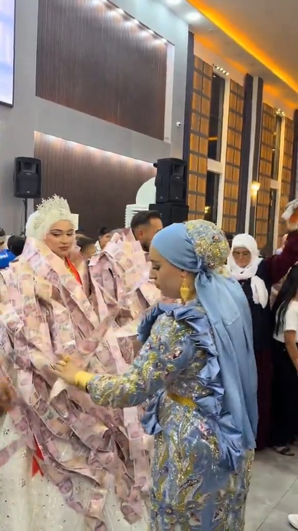Kızıltepe ilçesinde yapılan bir düğünün takı töreninde damada valiz içerisinde getirilen 200 TL’lik banknotlardan oluşan yelek giydirildi.