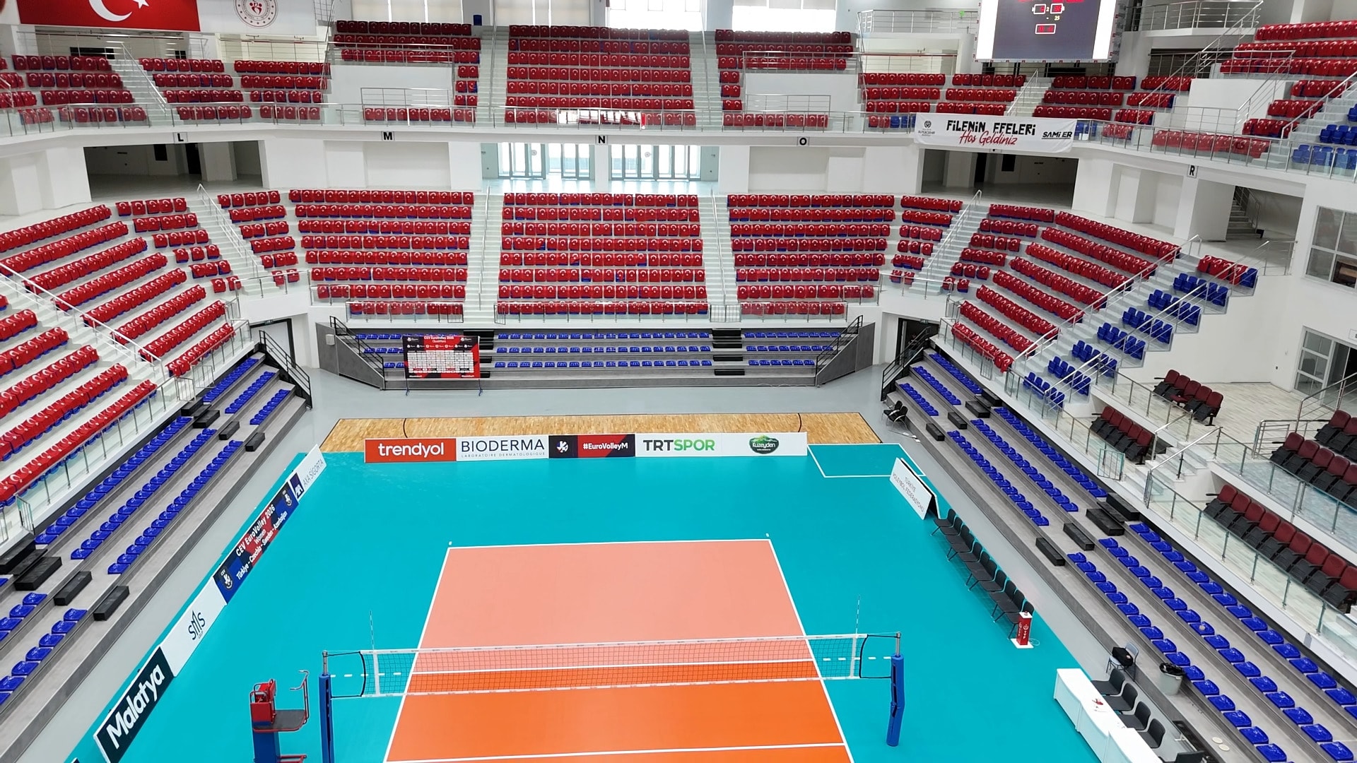 Malatya'da yarın 18.00'de oynanacak müsabaka için Orduzu Pınarbaşı Spor Salonu'nda hazırlıklar tamamlandı. 5 bin kişilik salonda tüm koltuklar Türk Bayrakları ile donatıldı. Yunan hakem Vasileios ve Azeri hakem Eldar Zulfugarov'un yöneteceği müsabakayı sporseverler hem salondan hem de salon dışına kurulan dev ekranlardan takip edebilecek.