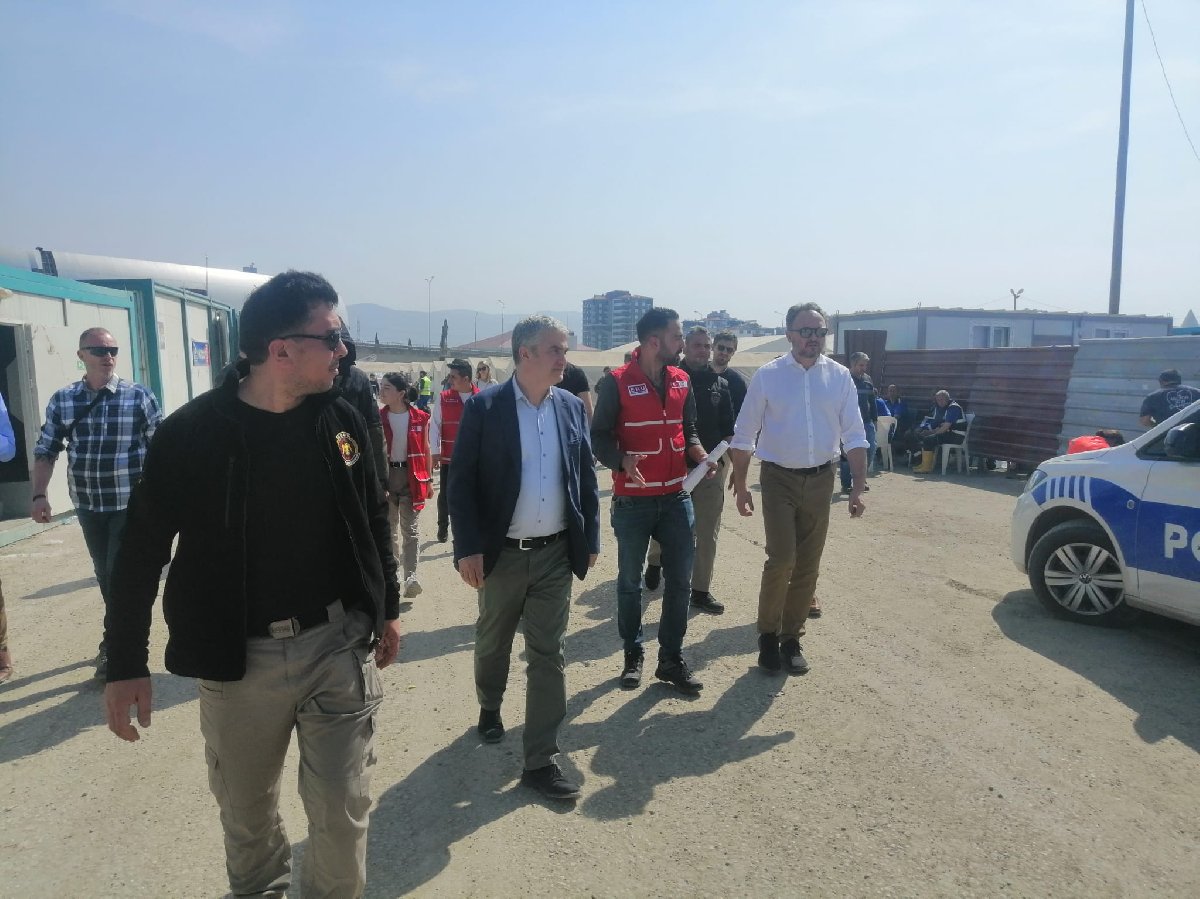 Adana Havalimanında Türk yetkililer tarafından karşılanan Danimarka Kalkınma Yardımı ve Küresel İklim Politikası Bakanı Dan Jorgensen daha sonra depremde büyük yıkımın yaşandığı Hataya geçti.