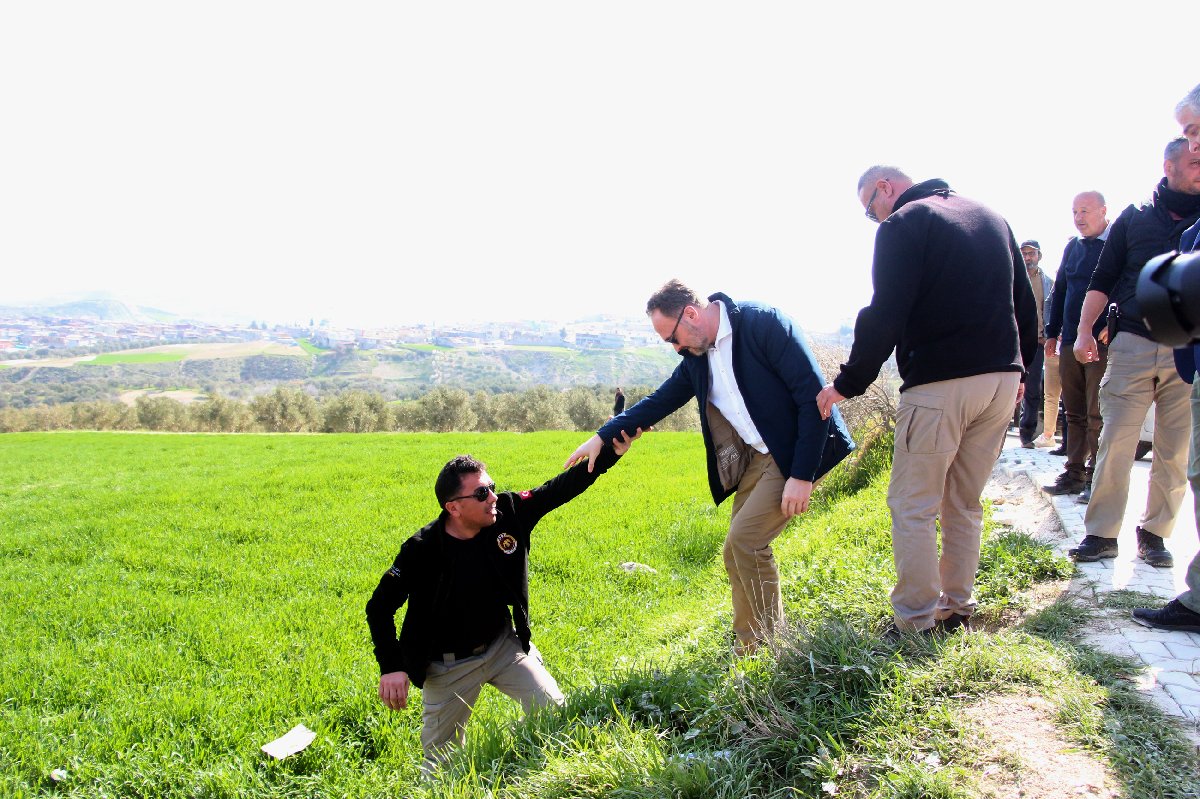Danimarka Kalkınma Yardımı ve Küresel İklim Politikası Bakanı Dan Jorgensen ile beraberindeki heyet, depremin vurduğu Hatay'ın merkez Antakya ilçesindeki enkaz bölgelerini gezdi.