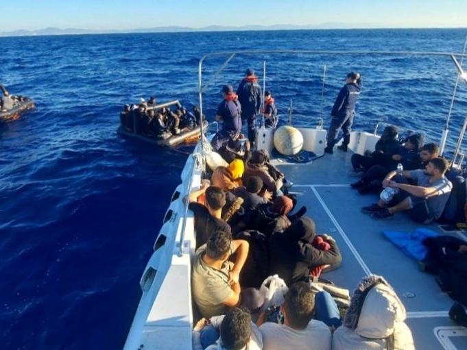 Muğla'nın Datça ilçesi açıklarında, Yunan unsurları tarafından Türk kara sularına geri itilen 64 kaçak göçmen, Sahil Güvenlik ekiplerince kurtarıldı.