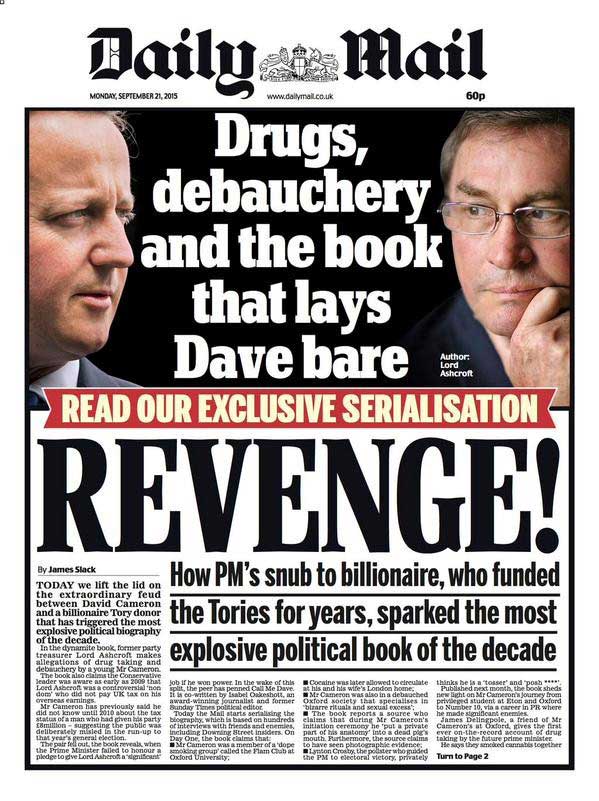 Britanya Başbakanı David Cameron hakkında Muhafazakâr Parti'nin eski Başkan Yardımcısı Lord Ashcroft ve gazeteci Isabel Oakeshott tarafından ortaklaşa kaleme alınan 'Call Me Dave' (Bana Dave de) isimli resmi olmayan biyografi kitabındaki, "Başbakanın Oxford Üniversitesi’ndeki öğrencilik yıllarında ‘Piers Gaveston’ adlı öğrenci kulübüne girebilmek için cinsel organını ölü bir domuzun ağzına koyduğu iddiası" ülkeyi karıştırdı.