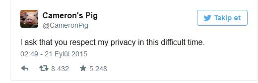 Kullanıcılar, kendisine bu kadar yakın bir isimden böylesi bir iddia geldiği için Cameron’ı tiye alırken, şimdiden bir de ‘Cameron’ın domuzu’ adında bir Twitter hesabı açıldı.