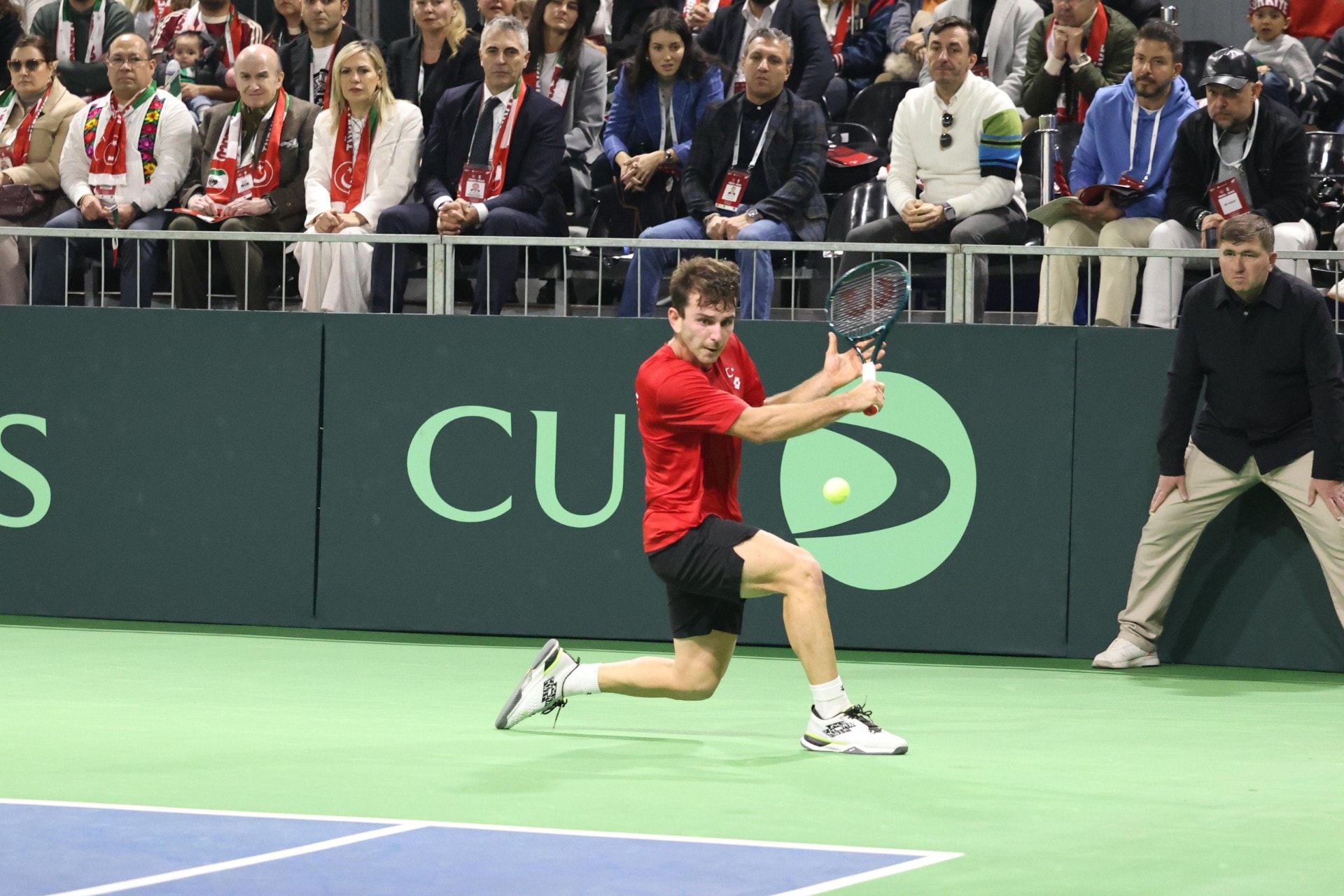 Davis Cup World Group I Play Off serisinin ilk maçında klasmanın 303’üncü numarasında bulunan Ergi Kırkın, dünya sıralamasında 658’inci sırada yer alan Alex Hernandez ile karşılaştı. 4 saat süren karşılaşmada Ergi Kırkın, Alex Hernandez’i 7-5, 5-7, 7-5 yenerek milli takımı 1-0 öne taşıdı.