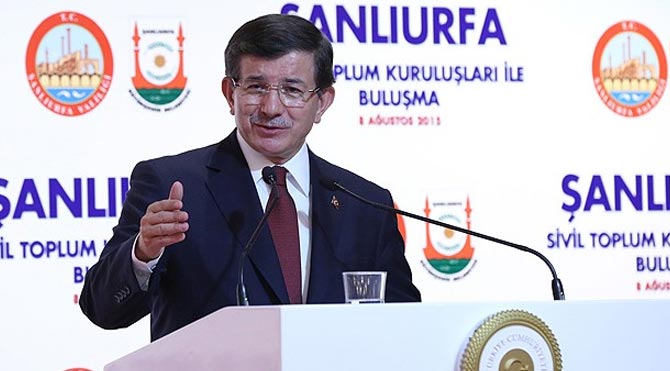 Son ziyaretinin çok hüzünlü bir vesileyle gerçekleştiğini anlatan Davutoğlu, "20 Temmuz'da, Suruç'ta bir terör saldırısında arkasında güzel dinimizin merhametini, şefkatini kirletmek dışında hiçbir meziyeti olmayan DEAŞ diye bir terör örgütünün olduğu bir terör saldırısıyla sarsıldık. 32 vatandaşımız hayatını kaybetti. Hemen sonrasında Şanlıurfa'daydım, yaralıları ziyaret ettim. Terör saldırısıyla ilgili teferruatlı bilgi aldım. Hemen aynı gün Adıyaman'a geçtim ve bu sefer 30 yıldır bu memleketin evlatlarına zulümden, terörden ve kandan başka hiçbir şey kazandırmamış olan ve hep bunlardan beslenen başka bir terör örgütünün, PKK'nın saldırısında şehit olmuş askerimizin cenaze törenine katıldım. Suruç saldırısıyla hem çok büyük bir ızdırabı yaşadık ama aynı zamanda da bir alarmı hep beraber hissetmeye başlamıştık. Birden Şanlıurfa'da ve bu şehirlerimizde arka arkaya gelen saldırılarla ciddi bir tehlikenin kapımıza geldiğini derinden hepimiz hissettik."