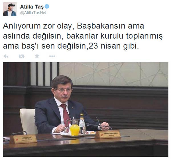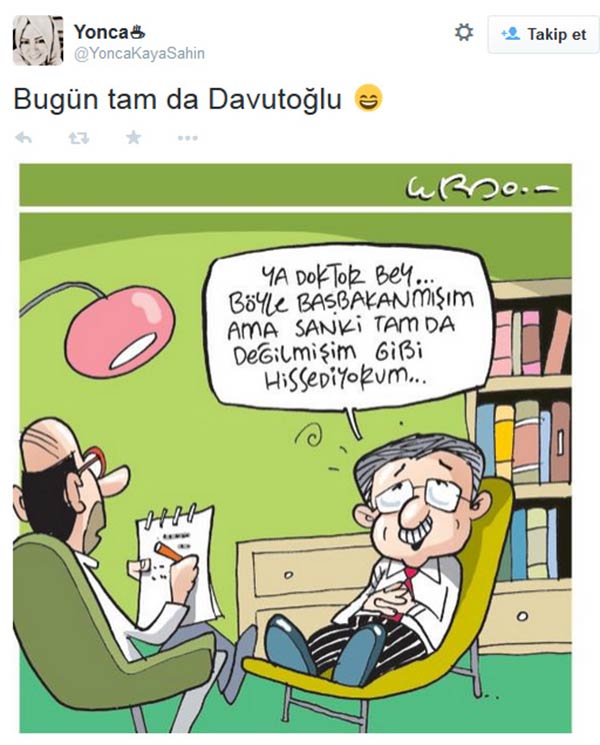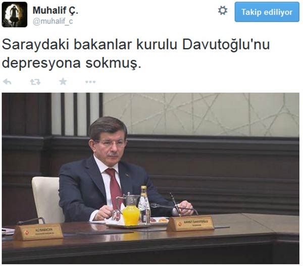 Bakanlar Kurulu, bugün Cumhurbaşkanı Recep Tayyip Erdoğan başkanlığında toplandı. Öğle saatlerinde gerçekleşen toplantıdan basına fotoğraflar servis edildi. Ancak içlerinden öyle bir kare vardı ki bir anda sosyal medyada paylaşım rekoru kırdı. Başbakan Ahmet Davutoğlu'nun Erdoğan'nın sağ tarafında otururken fırlattığı bakış, sosyal medyada 'kızgınlık' göstergesi olarak yorumlandı. Ardından Davutoğlu'nun bu haliyle ilgili capsler ve tweetler birbirini izledi. İşte onlardan bir kaçı: