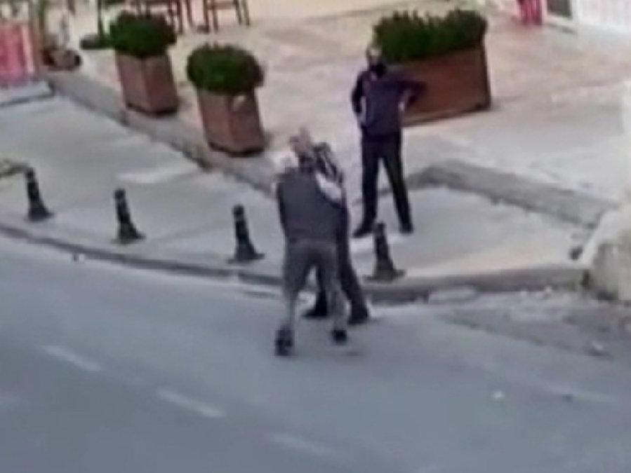 İstanbul Ümraniye’de yol üzerinde karşılaşan iki yaşlı vatandaş tekme tokat kavga etti.