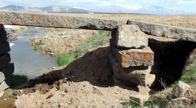 KAYSERİ'nin Tomarza İlçesinde bulunan asırlık taş köprünün etrafı hazine avcıları tarafından kazıldı.