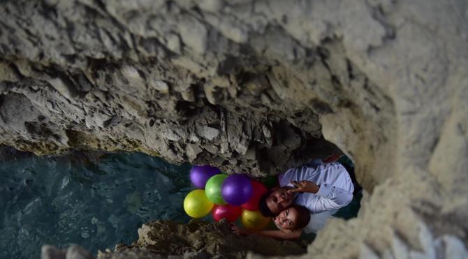 İZMİR'in turizm ilçesi Çeşme'deki Delikli Koyu, yeni evli çiftlerin çekimleri için doğal bir fon oluyor. çıların platosu haline gelen koyda hafta sonu denize giren, plajda güneşlenenlerin yanı başında gelin-damat poz veriyor.
