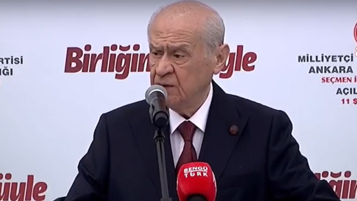 Cumhur İttifakı'nın Ankara'dan, Türkiye'den taraf olduğunu dile getiren Bahçeli, "Herkes tavrını belirlemek zorundadır. Ya birlikten, beraberlikten yana olacağız ya da gerilim ve kavga dolu bir geleceğe sürükleneceğiz. Ya kardeşliğin devamını isteyeceğiz ya da ağır bir yıkımı göze alacağız. Cumhur İttifakı kararını çoktan vermiştir. Tarafını belirlemiştir. Cumhur İttifakı Ankara'dan taraftır. Cumhur İttifakı Türkiye'den yanadır. Barışmak, kucaklaşmak için fırsat arayan vatandaşlarımı Türkiye ve Türk milleti değerleri etrafında buluşmak için Cumhur İttifakı'na davet ediyorum." dedi.