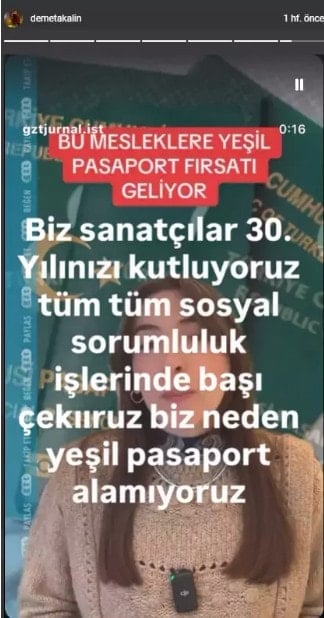 Teklifi eleştirenlerden isimlerden biri de şarkıcı Demet Akalın oldu. Akalın, söz konusu haberi Instagram hesabından paylaşarak, "Biz sanatçılar 30. yılımızı kutluyoruz, tüm sosyal sorumluluk işlerinde başı çekiyoruz. Biz neden yeşil pasaport alamıyoruz?" notunu düştü.