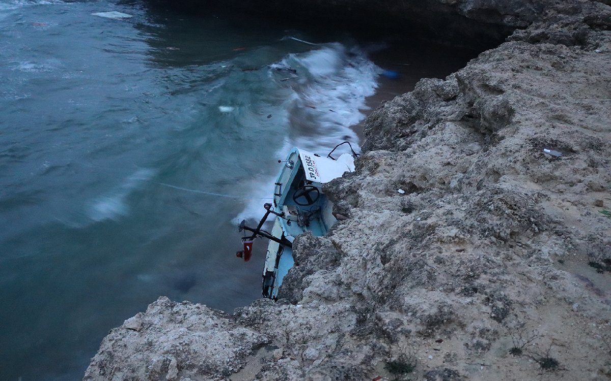 Kaptan Demirtaş da hava muhalefeti nedeniyle ağların pervaneye dolandığını, teknenin uzun bir süre sürüklendiğini anlatarak "Teknenin pervanesine dolanan ağlar nedeniyle motorumuzu çalıştıramadık. Teknemiz kıyıya sürüklendi ve parçalandı." diye konuştu. (AA)