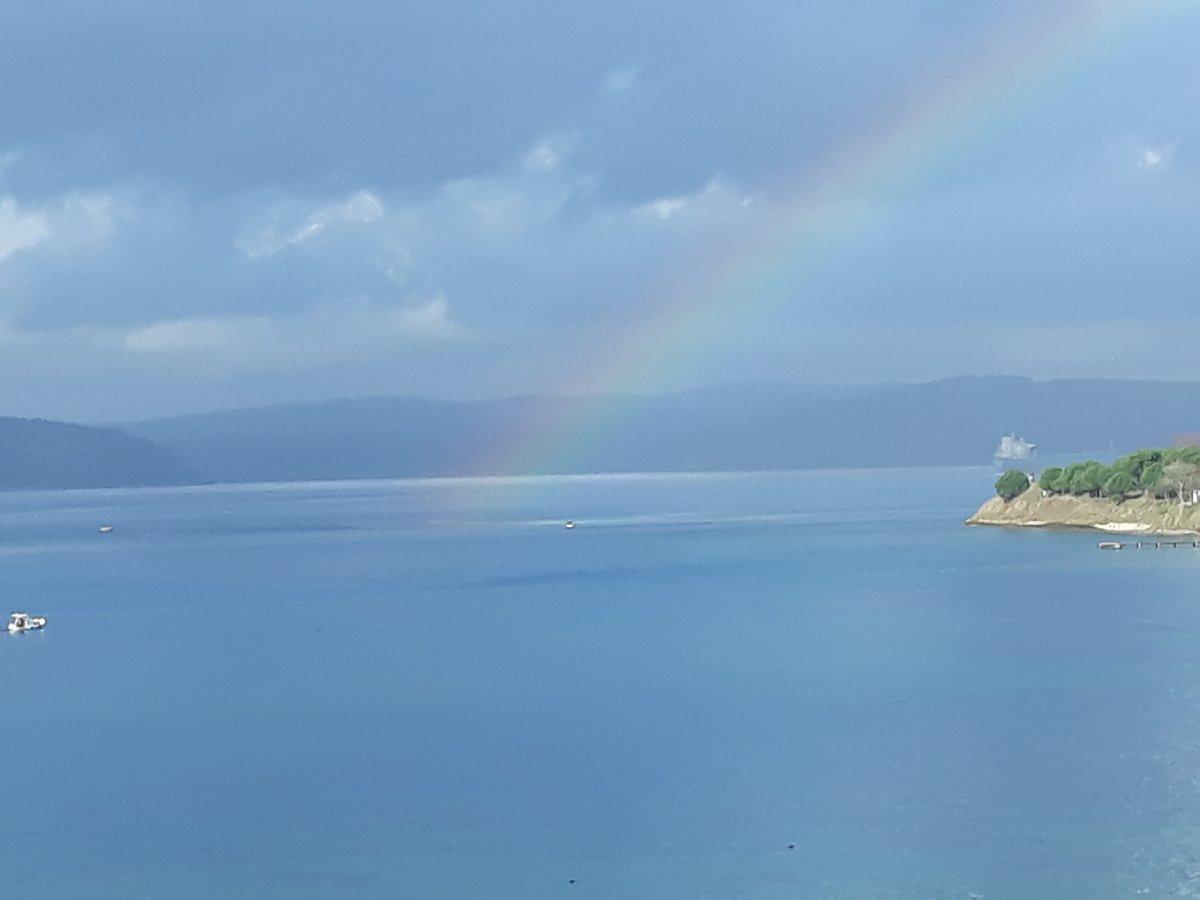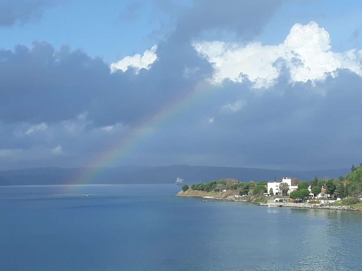 Deniz üzerinde oluşan gökkuşağı vatandaşları şaşırttı. Gökküşağını gören vatandaşlar cep telefonu ile bu anı görüntüleyerek sosyal medya hesaplarında paylaştılar.