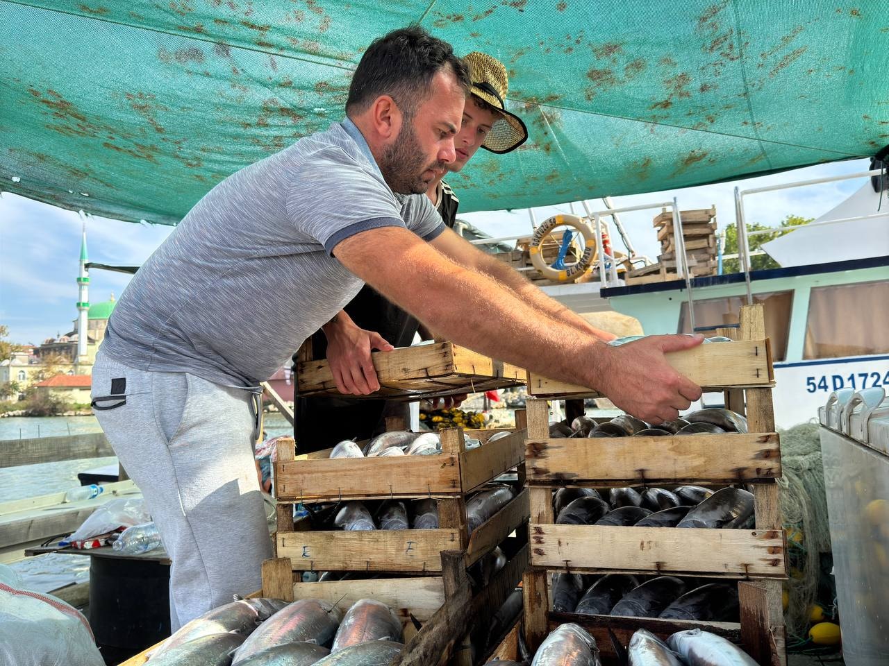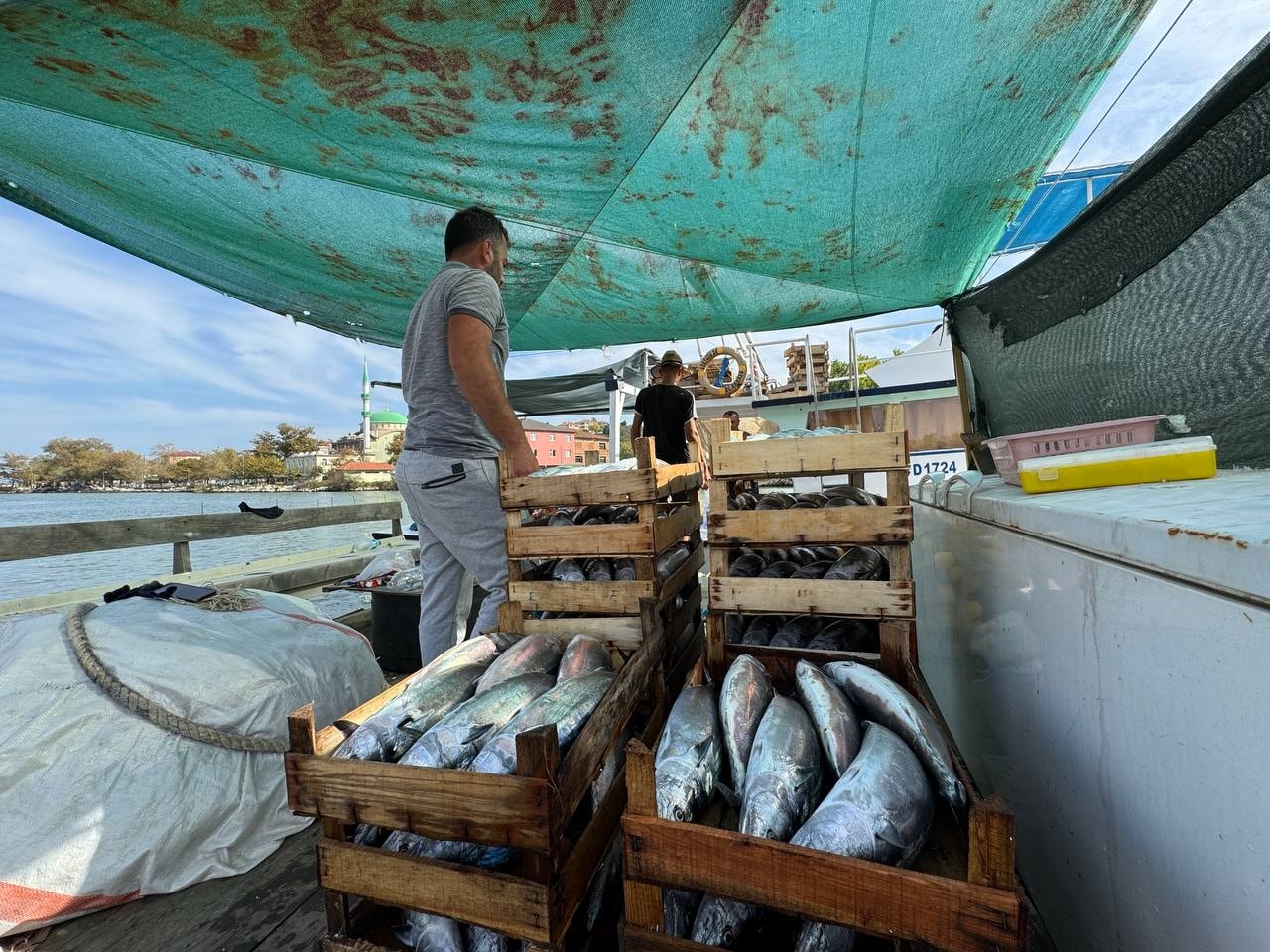 Kocaali ilçesinden Karadeniz'e açılan balıkçılar, tuttukları kasalar dolusu palamutla Melen Ağzı Limanı'na yanaşıyor.