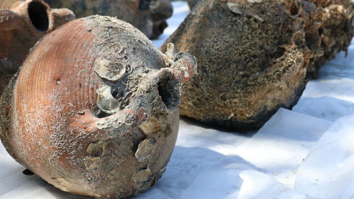 Denizden çıkarılan eserler, Yalova Müze Müdürlüğü yetkililerine teslim edildi. (AA)