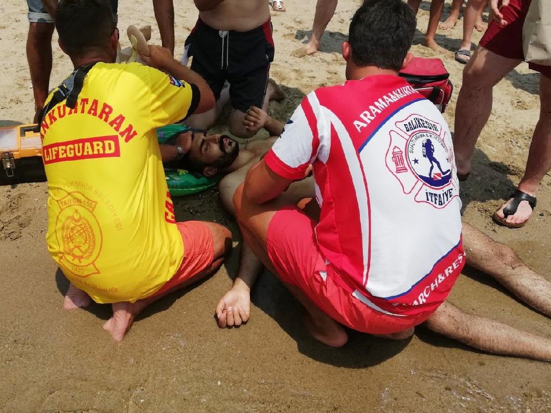 Denizden çıkartılarak ilk müdahalesi yapılan kişi, sağlık ekiplerine teslim edildi. Boynunun kırıldığı ileri sürülen Rezik ilk müdahalenin ardından hastaneye kaldırıldı.