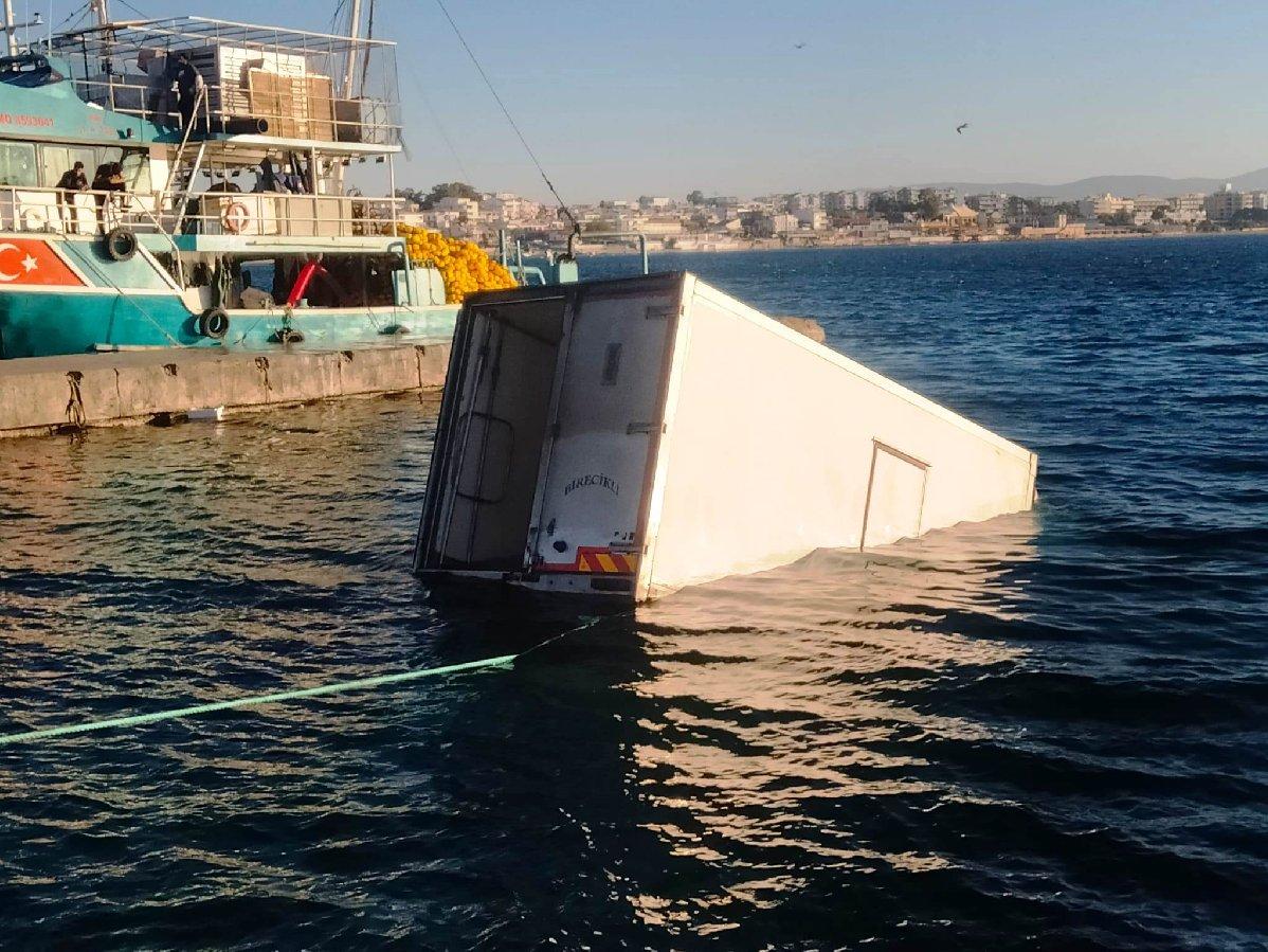 Aydın'ın Didim ilçesinde balıkçı limanından sabah erken saatlerde balık almaya gelen kamyonun sürücüsü kalp krizi geçirdi. Kontrolsüz kalan kamyon denize sürüklenirken, bir balıkçı son anda sürücüyü dışarı çıkarmayı başardı. Kamyon ise denize düştü.