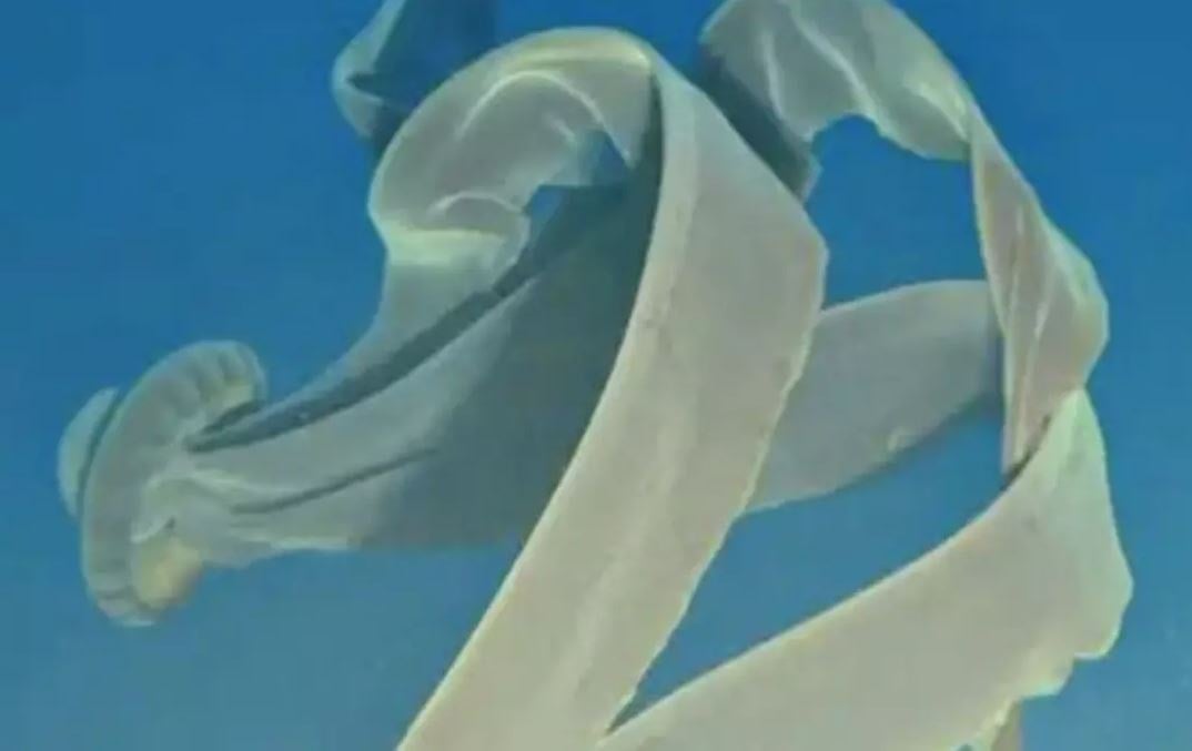 Yaklaşık 250 metre derinlikte kaydedilen bu devasa canlı, fiziksel özellikleriyle görenleri hayrete düşürüyor. Bilimsel veriler, canlının gövdesini oluşturan çan kısmının 1 metre, ağız çevresindeki dört kolunun ise tam 10 metre uzunluğa ulaştığını gösteriyor. Diğer denizanası türlerinin aksine yakıcı dokunaçları bulunmayan bu gizemli tür, avlarını yakalamak için devasa kollarını kullanıyor.