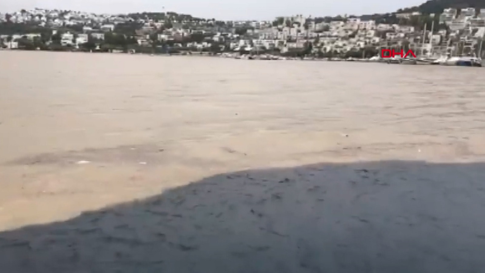 Muğla’nın Bodrum ilçesinde son günlerde etkili olan kuvvetli sağanak yağış, doğal görünümü de değiştirdi. Derelerden denize taşan çamurlu su, denizin bazı bölümlerinin kahverengiye dönmesine neden oldu.