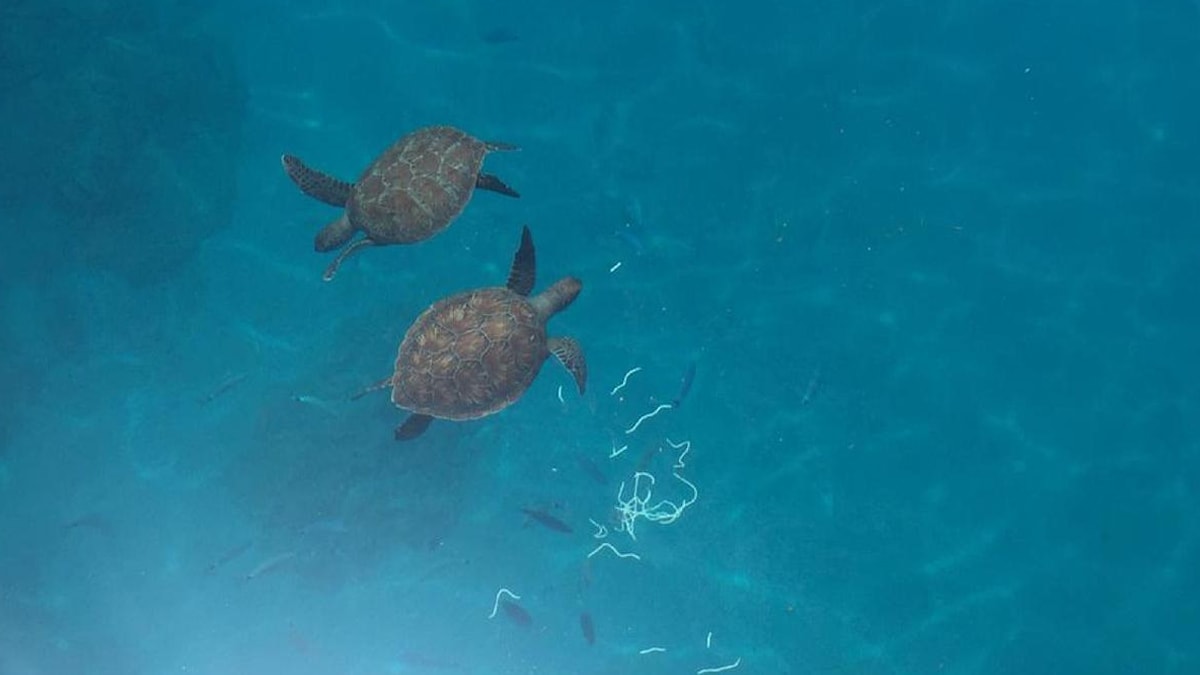 Boğazkent Mahallesi'nde denize açılan balıkçılar, balık tuttukları sırada teknelerin yanındaki kaplumbağaları fark etti.