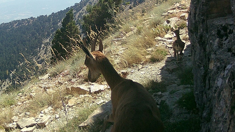 Görüntülerde, etrafı kolaçan ederek yem yiyen kızıl geyik, fotokapana doğru bakan tilki ile dağlarda gezen dağ keçileri yer alıyor.