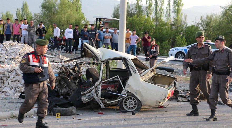 FOTO: DHAKaza bugün saat 18.00 sıralarında Denizli-Ankara karayolu Gürlek virajında meydana geldi. Ersan Ulusan (24) yönetimindeki 20 BP 075 plakalı otomobille Denizli istikametine giderken, virajı alamayıp, direksiyon hakimiyetini kaybetti. Kontrolden çıkan otomobil orta refüjü aşarak karşı şeride geçti. Ulusan'ın kontrolünden çıkan otomobil, karşı yönden gelen ve Ankara istikametine giden Emrah Turan'ın kullandığı 20 DU 762 plakalı otomobile ardından da aynı yönde giden Ülfet Menteşeoğlu'nun kullandığı 17 ES 830 plakalı otomobile çarptı. Turan'ın kullandığı otomobil çarpışmanın etkisiyle paramparça olurken, motoru da yaklaşık 50 metre ileriye fırladı.