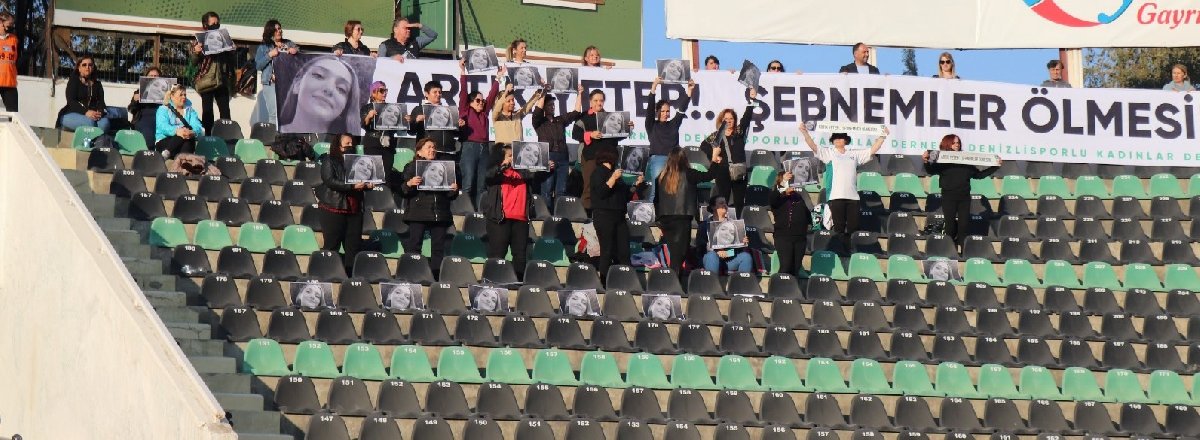 Maç başlama düdüğünün ardından ise Denizlisporlu Kadınlar Derneği (DESKAD) üyeleri tribünde kadın cinayetine kurban giden Şebnem Şirin’in resminin olduğu pankart açtı. Pankartta ise, ‘Artık yeter. Şebnemler ölmesin diyerek mesaj verildi. Denizlisporlu futbolcular da, aynı pankartla sahaya çıkarak kadın taraftarlara destek verdi.
