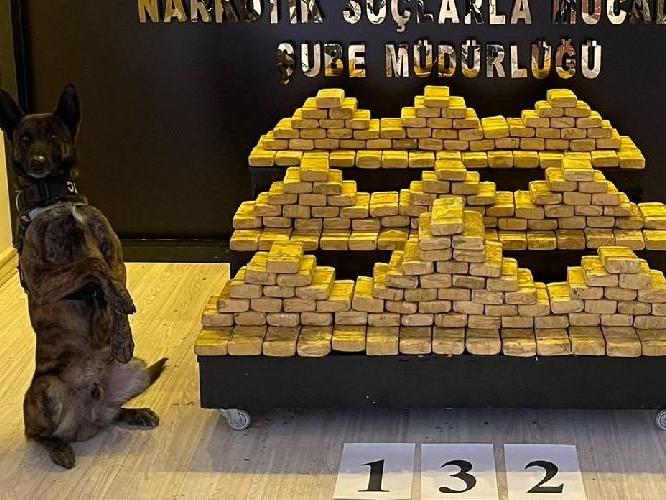 Hakkari'nin Yüksekova ilçesinde bir depoda yapılan aramada narkotik köpeği 'Ayzek', 132 kilo 300 gram eroin buldu.